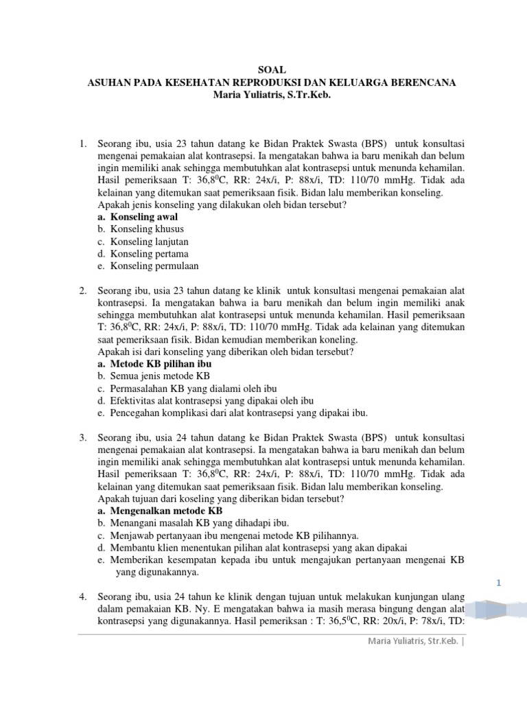 Download View Soal Kespro Dan Kb as PDF for free. Hasil pengkajian pasien a. Berikut yang merupakan aplikasi Pengolah Kata adalah.