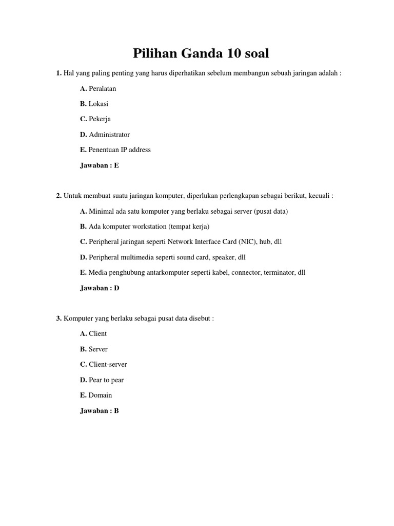 Soal Dan Jawaban Pilihan Ganda Tkj
